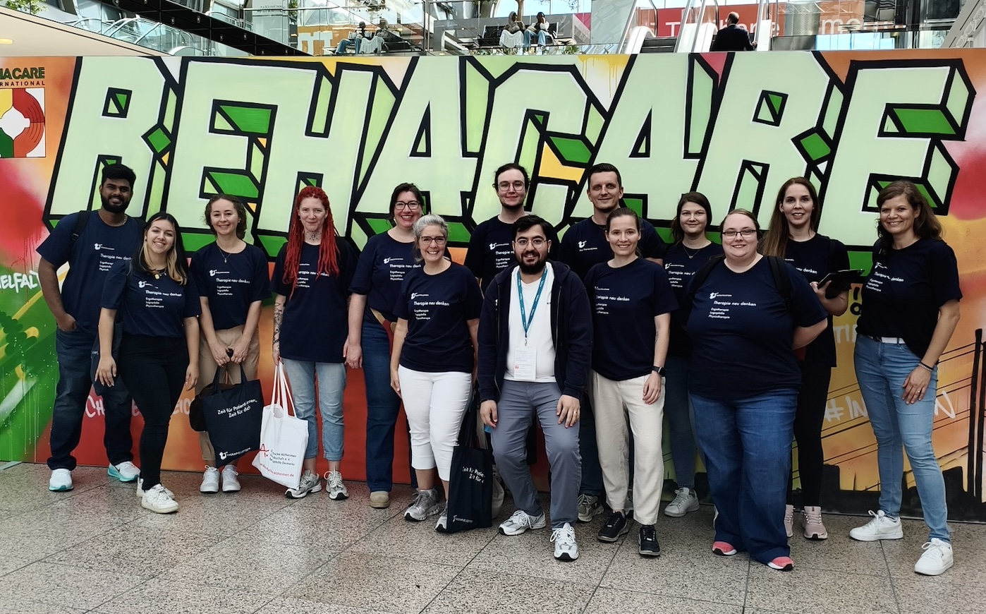 Am 19.09.2025 haben sich 14 Therapielotsen auf den Weg nach Düsseldorf gemacht, um gemeinsam die Rehacare Messe zu besuchen und die neusten Innovationen im Bereich Rehabilitation, Prävention, Inklusion und Pflege bestaunen und selbst testen zu können.